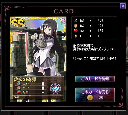 割合で言うと服3/アクセ2/スキルカード2残り全部武器ですw
