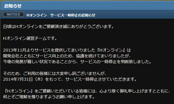 サービス停止告知
