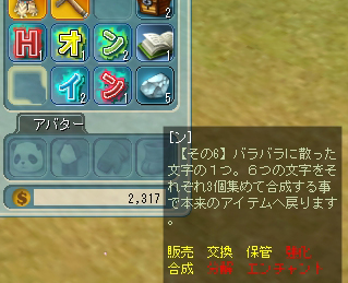 H/オ/ン/ラ/イ/ン と6文字集めて合成するとできるアイテムを使うもの。