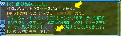 成功してもインベントリに入らず材料だけ消えてましたT_T