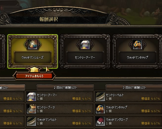 上の画面は報酬画面より。